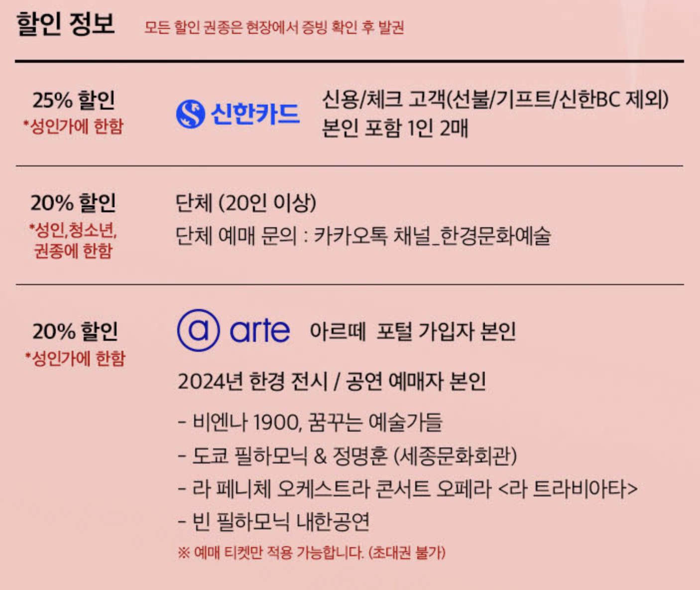티켓 가격 및 할인 정보